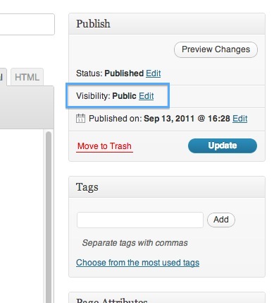 Follow these instructions if you want to password protect content on a particular page or post. Users given the password will be able to access the content until you change the password.